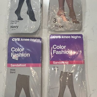 6 Pairs Sealed VTG CVS Knee-Highs Sandalfoot & RT Wide Band