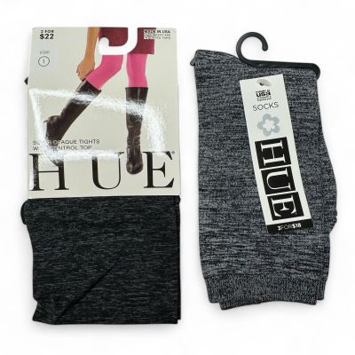 Hue Graphite Heather Super Opaque Tights Sz 1 & 1 Pair Black