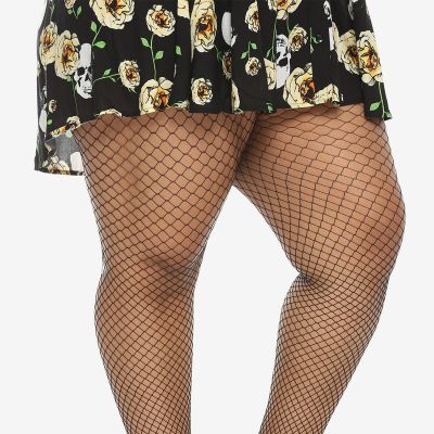 FASHION PLUS SIZE BLACK MEDIUM FISHNET FOOTED TIGHTS 1X/2X