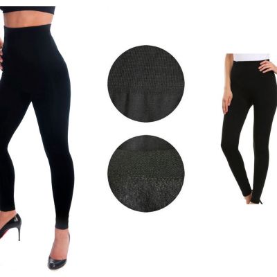 Women's Tummy Black HIGH WAIST FOOTLESS Fleece Lined LEGGING