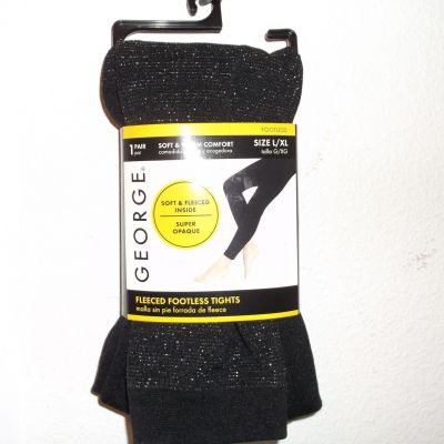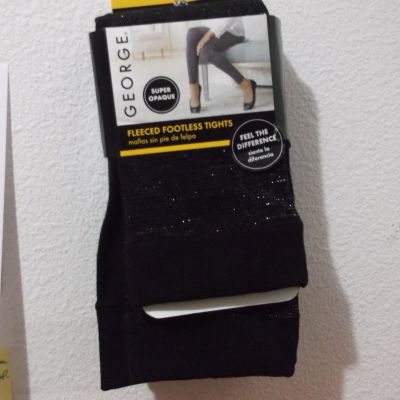 NEW GEORGE LADY'S FLEECE FOOTLESS TIGHTS in BLACK w/ METALI