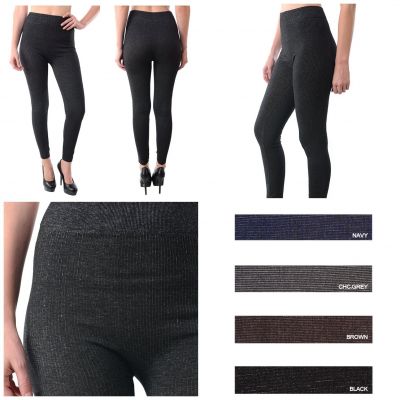 Women Seamless Footless Knitted Striped Legging .