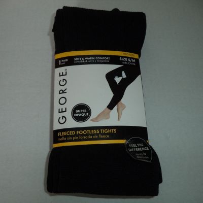NEW GEORGE LADY'S FLEECE FOOTLESS TIGHTS in a BLACK w/ RIB