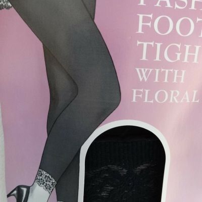 Fashion Footless Tights with Floral Lace ~ Black ~ Fits 5"