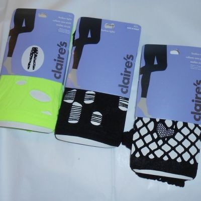Claire's Two (2) Pairs Ripped Footless Tights Lime Green & B