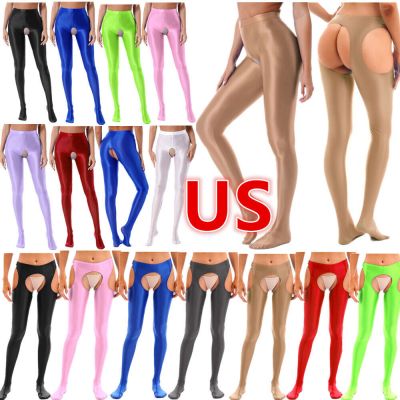 US Womens Glossy Tights Pantyhose Stretchy Open Crotch Seaml