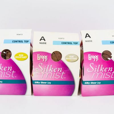 3 L'eggs Silken Mist Control Top Run Resistant Silky Sheer L