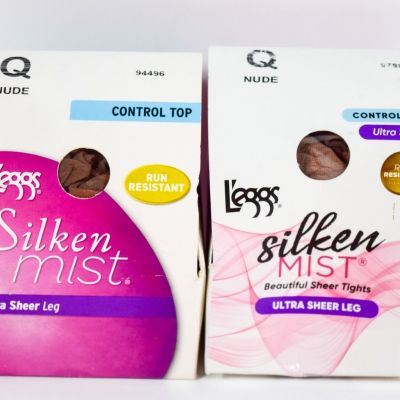 2 L'eggs Silken Mist Ultra Sheer Leg Control Top Run Resista
