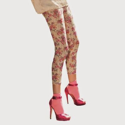 Trasparenze Flowery Floral Design Purple Leggings Size M/L .