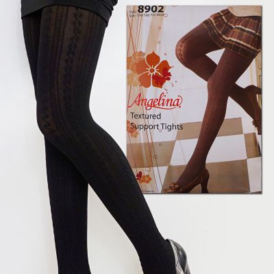 Angelina Women Black Opaque Cable Knit Lace Patterned Winter