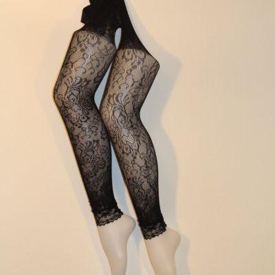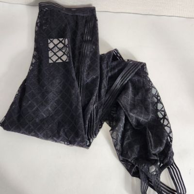 apt. 9 medium black lace tights net to waist D1 .
