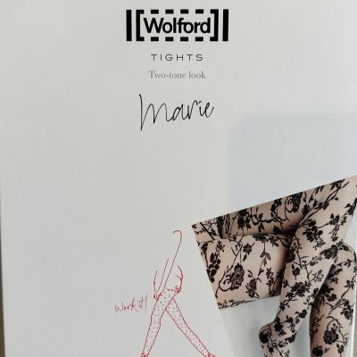 Wolford Marie Tights Black/Black Medium 14786 Retail $67 .