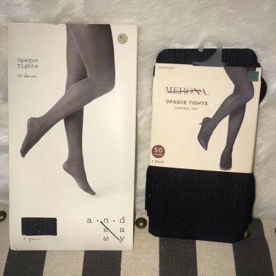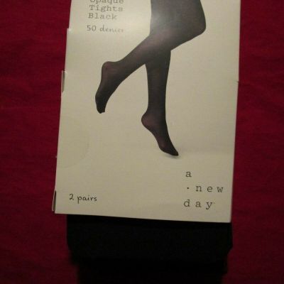 2 Pair A New Day Black Opaque Tights Womens M/L .