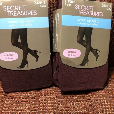 Buy 2 Of Women Secret Treasures Size 1 Control Top Burgundy Opaque Tights 60 denier Pantyhose Library