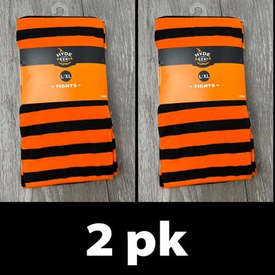 2pk HYDE and EEK Womens Striped Opaque Tights, Orange/Black