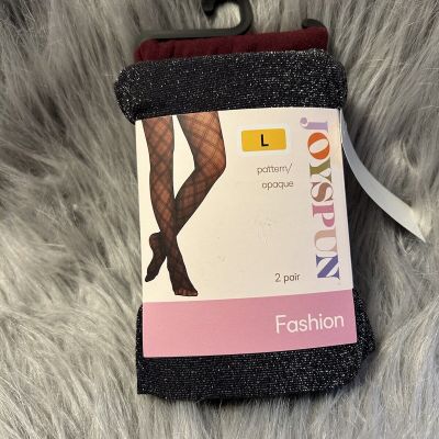 Joyspun Tights Womens Size Large Black Shimmer And Crushed P