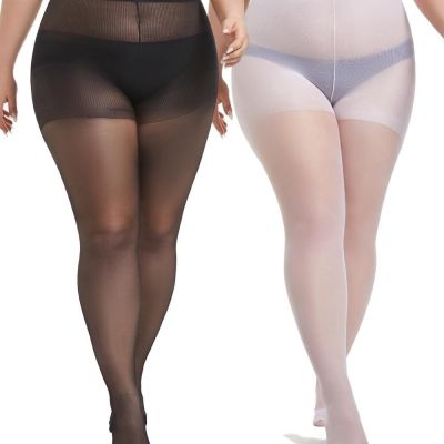 2 Pairs Plus Size Sheer Tights for Women, 20D Soft Sheer Que