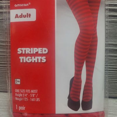 NEW - Amscan One Size Tights - Black + Red Stripe .