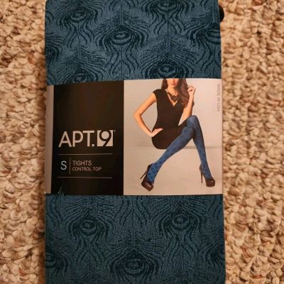 NWT Apt 9 Teal Fashion Tights Peacock Feather Print Control