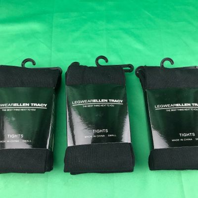 NWT LADIES 3 pairs ELLEN TRACY BLACK TIGHTS SZ - SMALL .