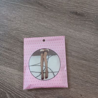 Womens Tan Sheer & Lace Thigh High Nylon Stockings, M .