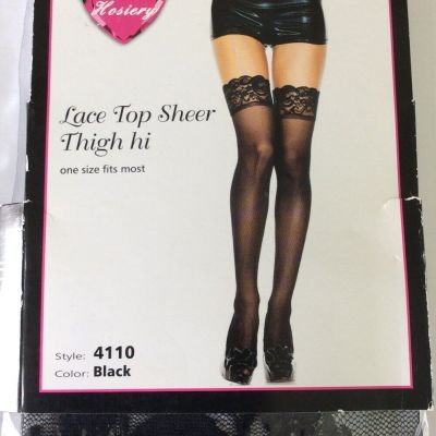 Be Wicked Lace Top Sheer Nylon Thigh Hi - One Size - Black 4