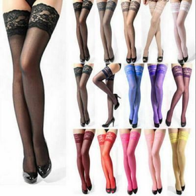 Stay Up Fishnet Thigh Highs Silicone Lace Top Stockings Hosi