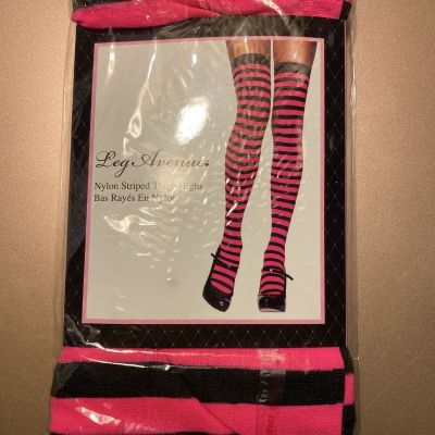 Opaque Stripe Thigh High Stocking Pink Black LEG AVENUE OSFM
