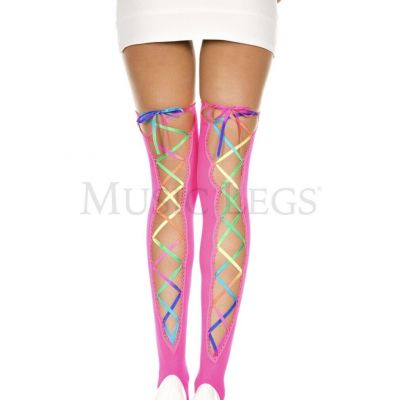 Rainbow Lace up Ribbon Tigh High Stockings PRIDE Ravewear Da