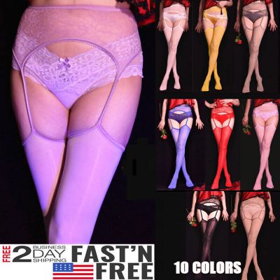 US! Women Thigh High Stockings with Garter Belt Oil Shiny Se