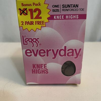 VINTAGE L'eggs Everyday 12 Pair One Sz Suntan Knee Highs St