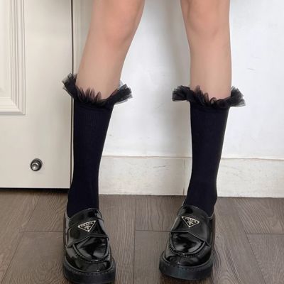 Black Tulle Ruffle Socks – Elegant Sheer Frill Gothic Loli