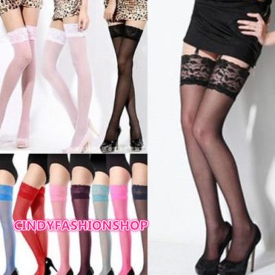 Buy Womens Glossy Ultra-thin Shiny Sheer Lace Top Thigh High Silk Stockings Hold Ups Pantyhose Library
