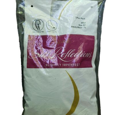 Hanes Silk Reflections Barely Black Pantyhose 3 Pr Pack Slig