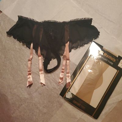 Garter & Stocking. By Sophie B. S/5 Black Lace Pink Straps