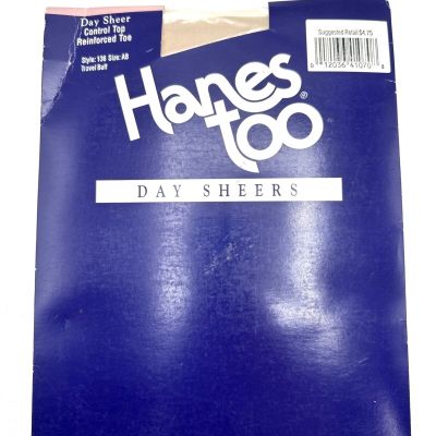 NOS Hanes Too Control Top Pantyhose Size AB Travel Buff 136