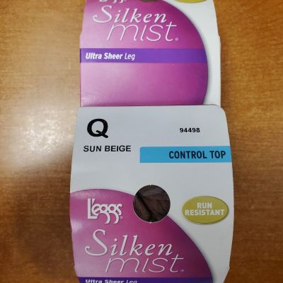 2Pk Leggs Silken Mist Ultra Sheer Control Top Size Q Sun Bei