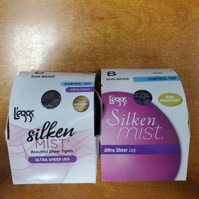 2Pk Leggs Silken Mist Ultra Sheer Control Top Size B Sun Bei