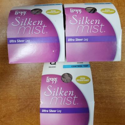 3 Pairs: Leggs Silken Mist Ultra Sheer Leg Control Top Size
