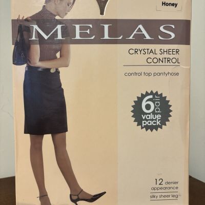 Melas 6 Pair Women's 12 Denier Crystal Sheer Control Pantyho