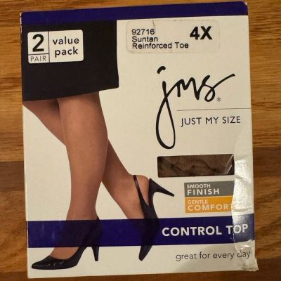 JMS - Just My Size Control Top Pantyhose SUNTAN 4X - 2 Pair