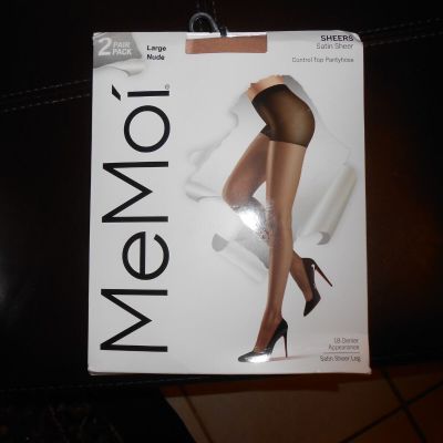 2 Pairs MeMoi Sheers Satin Sheer Control Top Pantyhose Nude