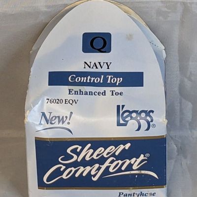 Vintage Leggs Sheer Comfort Control Top Pantyhose Navy Queen