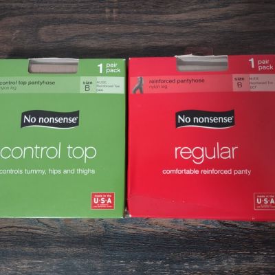 2-New No Nonsense Nylon Leg Reinforced Pantyhose, Size B, Nu