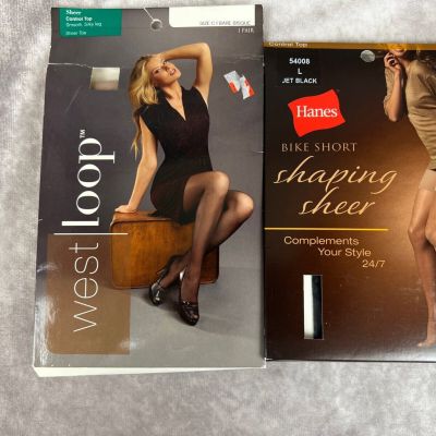 Lot 2 West Loop Hanes Pantyhose Black Nude Sheer Control Top