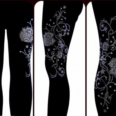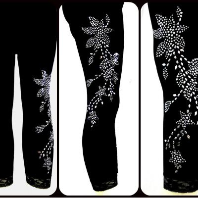 Buy Regular One Size Capri Length Leggings Embellished Rhinestone Silver Floral Pantyhose Library