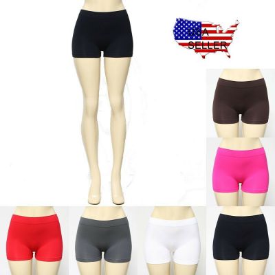 SEAMLESS BASIC SOLID PLAIN TIGHT MINI BIKE SHORTS STRETCH SP