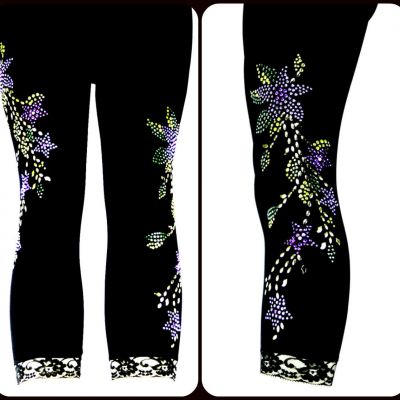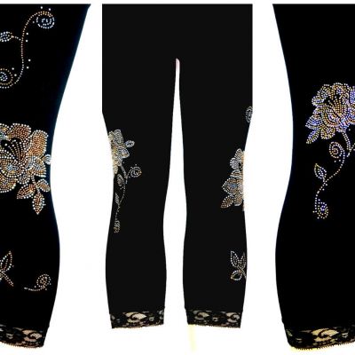 Plus One Size Capri Length Leggings Embellished Rhinestone S