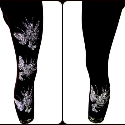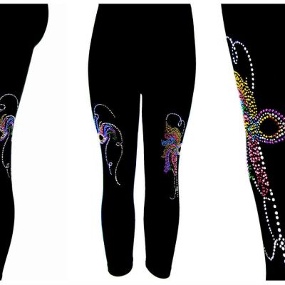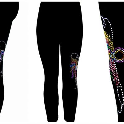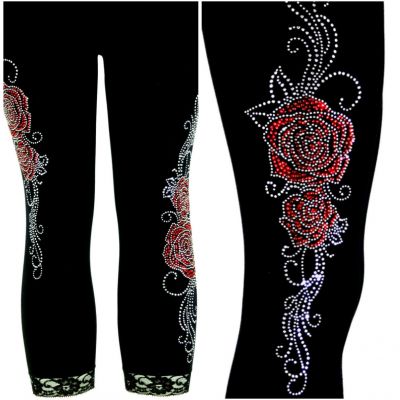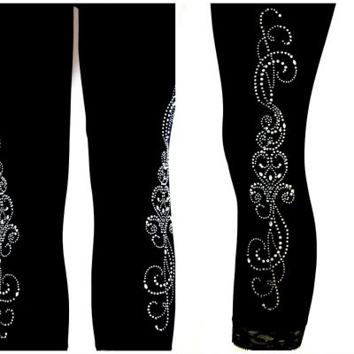 Regular One Size Capri Length Leggings Embellished Rhineston