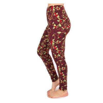 Christmas Print Peach Skin Women's Full Length Patterned Fas